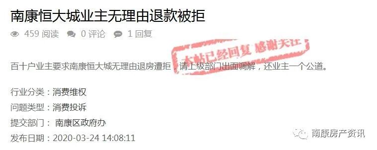 您反映的问题已收悉,我区高度重视,经我区住建局(房管局)调查核实,现回复如下:2020年3月20日,我区组织区住建局、区司法局、区人民法院与恒大城维权业主代表在恒大城售楼部会议室召开了相关问题协调会。会议明确先由我区矛调中心组织调解,如调解不成,建议业主采取司法途径维护权益,我区政府为恒大城业主提供无偿法律援助,协助业主合法维权。待法院判决后,理应退房、退款的,恒大公司应积极办理退房、退款手续,及时退房退款。2020年3月27日,我区住建局(房管局)工作人员与您取得电话联系,就有关问题向您进行了沟通解释,您表示理解。感谢您对我区住建局(房管局)工作的信任、理解和支持,如还有疑问,可直接拨打我区住建局(房管局)电话:0797-6619958咨询了解。2020年3月27日
