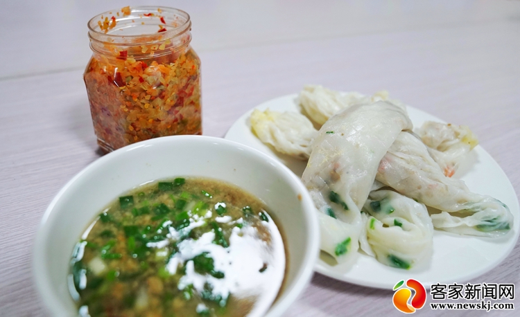 烫皮是一道传统的赣南客家美食,不仅味道好,价钱也不贵。这样一道简单的美食,在规模化、精细化生产之后,竟也能成为一个带领群众增收致富的产业。