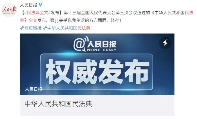 5月28日,十三届人大三次会议以高票表决通过《中华人民共和国民法典》,自2021年1月1月起施行。民法典是新中国第一部以法典命名的立法,对现行民事法律规范进行了科学整理和修改。