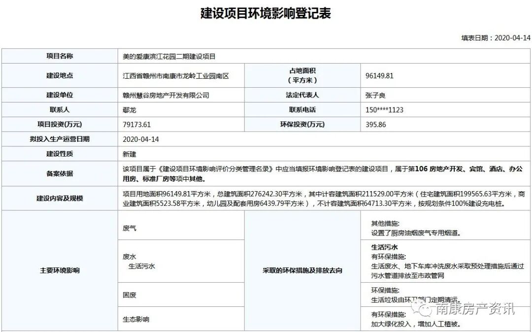 4月9日,南康区美的爱康滨江花园二期建设项目环境影响登记表发布,其中项目投资接近8亿元,一起来看看具体情况~