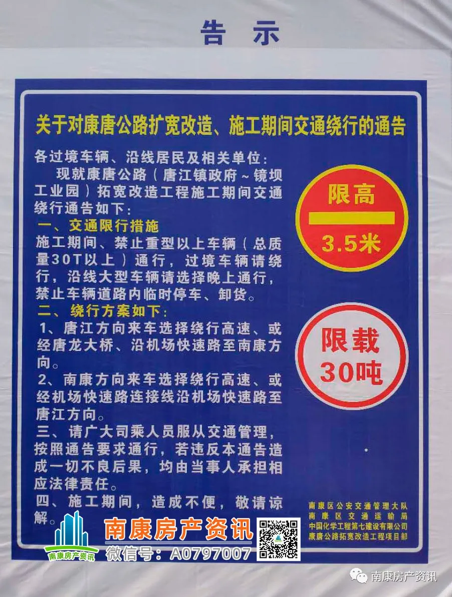 南康人民都知道,一直以来,康唐公路是连接南康城区与唐江等北部乡镇一条很老很重要的交通要道。虽是交通要道,但是老的公路却不是很宽,特别是近年来,随着车流量大增,经常经常都是特别的拥堵!去年底开通了机场快速路后,近日也迎来了一个大好消息:康唐公路(唐江镇政府至镜坝工业园段)马上要扩宽改造施工啦!!同时该路段即将进行一定的交通管制,希望大家相互转发提醒哦~~一起来看看具体通告