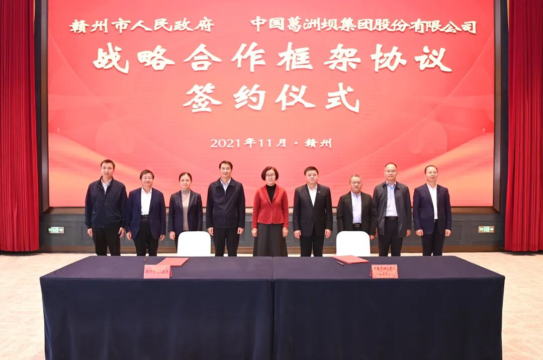 11月17日,中国能建葛洲坝集团与江西省赣州市签署战略合作框架协议,双方将在水利水电、新能源、交通基础设施、生态环境治理等领域开展全方位合作,打造政企合作新标杆。集团股份公司党委书记、董事长宋领与江西省委副书记、赣州市委书记吴忠琼见证签约并座谈交流。