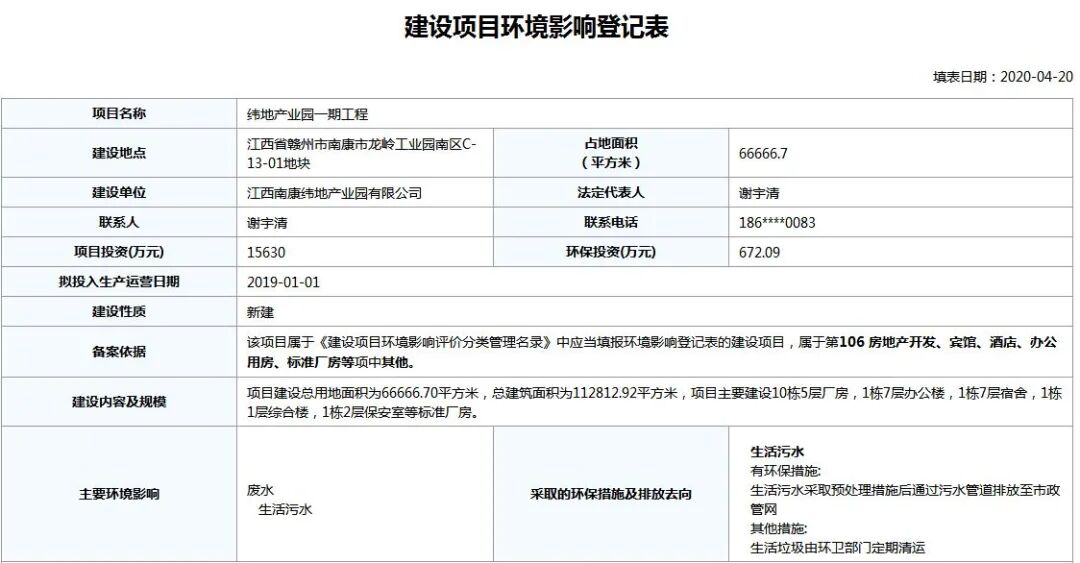 4月20日,南康区纬地产业园一期工程项目环境影响登记表发布,其中项目投资15630万元,一起来看看具体情况~