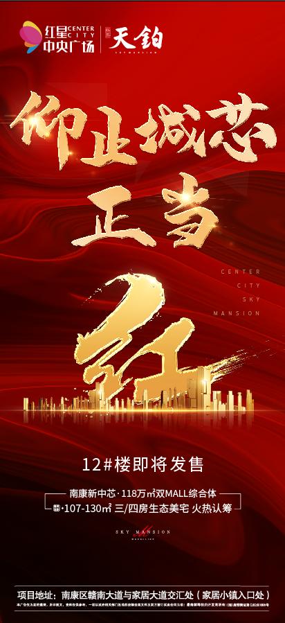 【红星·中央广场】南康新中芯·118万㎡双MALL综合体建面约107-130㎡三/四房天铂美宅