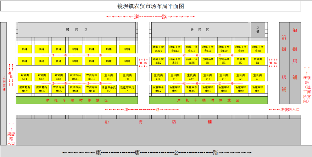二、标的展示时间、展示地点:即日起至2020年5月28日17时前在标的所在地展示,由竞租人自行查看标的。三、拍卖方式:采用现场无保留价增价拍卖方式,按照价高者得的原则确定竞得人。四、竞买条件:凡具有合法资格的中华人民共和国企业法人或其它组织、具备完全民事行为能力的自然人(法律另有规定者除外)均可报名参加竞买。有意竞买者必须持有效证件、复印件及竞买保证金转账凭证于2020年5月28日17时前办理报名手续,且竞买保证金经查证到账后,方可取得竞买资格。五、竞买保证金转入以下账户:户名:赣州金房拍卖有限公司;开户行:中国建设银行赣州章贡支行;账号:3600 1125 1800 5250 2330;(转账时请注明“镜坝镇农贸市场摊位竞买保证金”)六、特别提示:1、按照标的物的实际现状(含瑕疵)拍卖。竞买人需自行实地察看标的,拍卖人及委托人均不承担任何瑕疵担保责任。请各位竞买人在办理报名手续前,务必认真确认经营类别、具体经营摊位和位置,一旦参与竞租成功,即具有法律效力,不得更改。2、拍卖会按经营类别分类依次进行,竞买人按自行报名确认的经营类别进入竞租会场和竞价。相同经营类别的,竞买人一份竞买保证金可竞买其中任一摊位,但一份保证金仅限竞得一宗摊位,两份竞买保证金限竞得两宗摊位,以此类推。3、租金支付时间:租金为年缴,一次性缴清,竞得者的竞买保证金抵扣租金,不足部分于拍卖成交当日由拍卖公司代委托方收取,先缴后用。4、成交价(即租金)含卫生费,拍卖佣金、税费、水电及标的移交等费用由竞得者承担。5、拍卖结束后,竞得者须当场与拍卖公司签署《拍卖成交确认书》,并持《拍卖成交确认书》自拍卖成交之日起三日内与镜坝镇人民政府签定《摊位经营合同》,逾期不办。如竞得人拖延签署或拒绝签署的、不按拍卖文件约定时间内缴纳拍卖佣金和租金款项的,视为竞得人放弃竞得资格,其竞买保证金不予退还,标的物由出租人收回,未竞得者的竞买保证金自拍卖结束后五个工作日内按原进账方式全额无息退还。 6、其他竞租须知和拍卖规则请参见《资料册》。七、咨询电话及报名地址:联系电话:0797-6623558 、18370741441(何先生)18670146655(叶先生)报名地址:镜坝镇人民政府执法大队办公室。 赣州市南康区镜坝镇人民政府赣州金房拍卖有限公司2020年5月14日 平面示意图