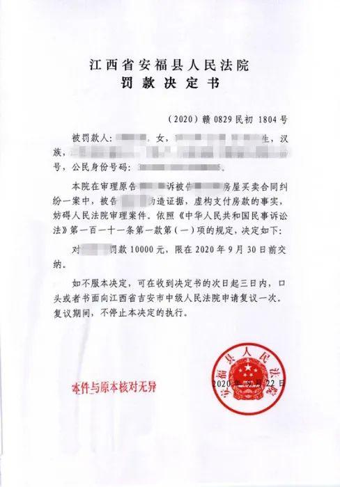 近日,江西省吉安市安福县一名当事人在一起房屋买卖合同纠纷中,对关键的还款事实作虚假陈述,违反诚信信用原则,安福县人民法院依法对她作出了罚款一万元的处罚决定。