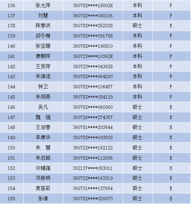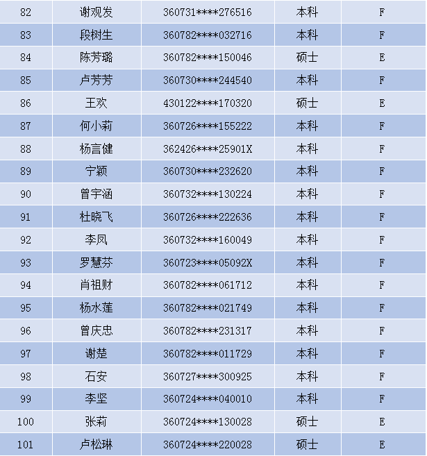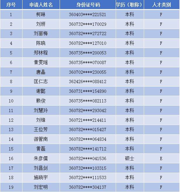 根据区人才工作领导小组办公室《关于进一步做好区公共租赁住房定向用于人才配租工作的通知》(康人住字〔2020〕1号)文件要求,经区人社、教育、不动产登记、住房保障等部门联合审核确认,2020年第一批公共租赁住房定向用于人才配租申请共有197户申请家庭符合条件。为保证公开、公平、公正,现公示如下,接受社会和群众监督。如有异议,请于2020年5月23日至2020年5月27日公示期间来人来信来电反映。区人才工作领导小组办公室电话:0797-6795390邮箱:nkzfbz@163.com。