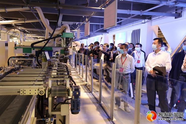 嘉宾在参观南康家居小镇中的家具智能制造示范生产线。
