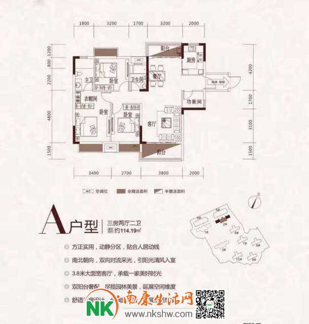 价格65 户型3室2厅2卫 面积95平米