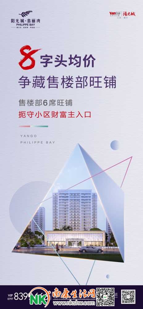 赣州市蓉江新区管委会旁阳光城翡丽湾,临街旺铺出售,9米层高,单价8字头起,只有6间,先到先得!
