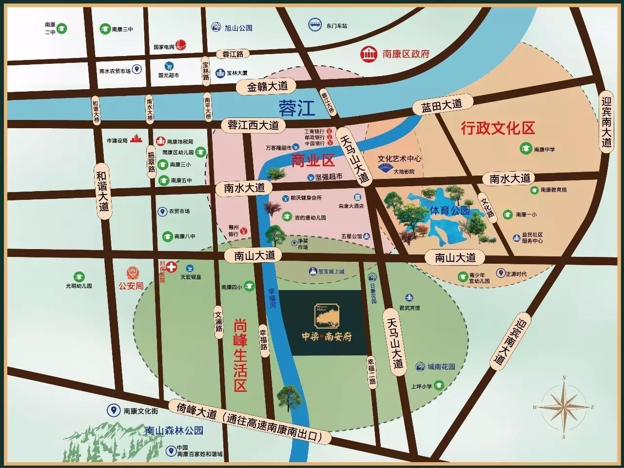 项目紧邻天马山大道、南山大道两条城市主干道。天马山大道直接连通南康老城区;经南山大道往北可达到南山大道,而南山大道成为连接南康家具交易区的主干道;南山大道往南5分钟直达南山生态人文公园。同时,6、11、12路公交车从项目旁经过,出行十分便利。便捷的路网和公交为您今后的出行带来更多的选择