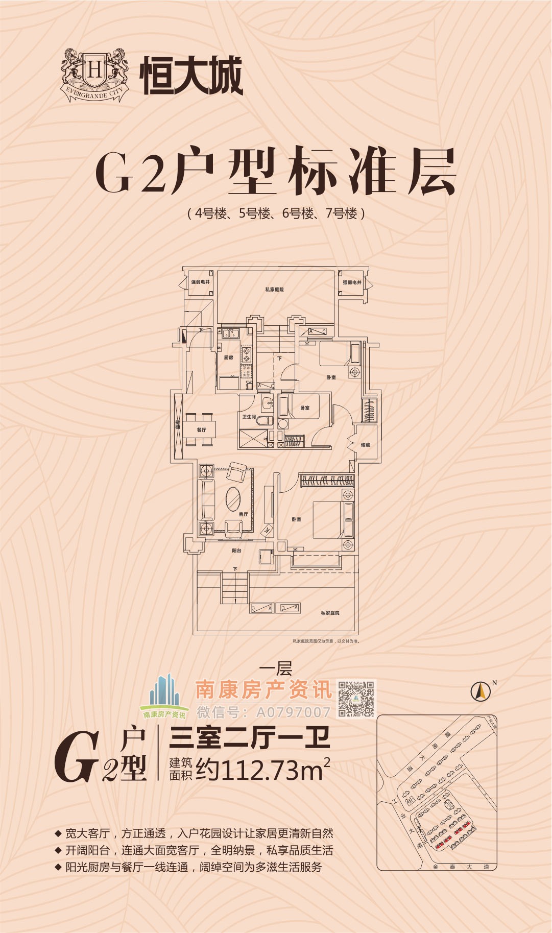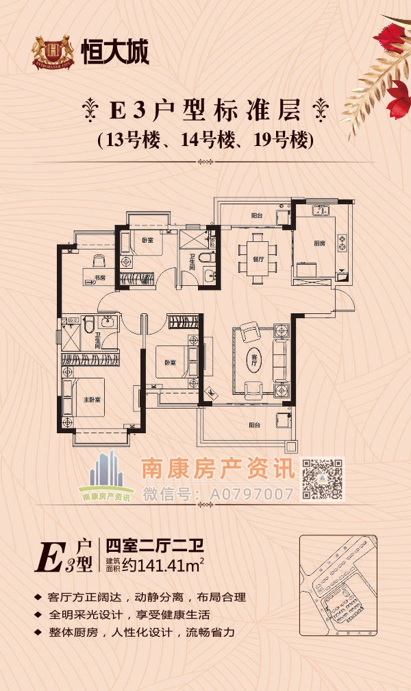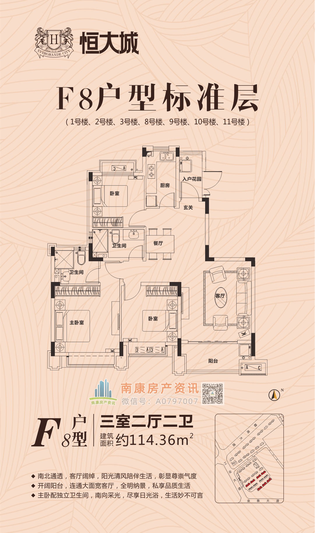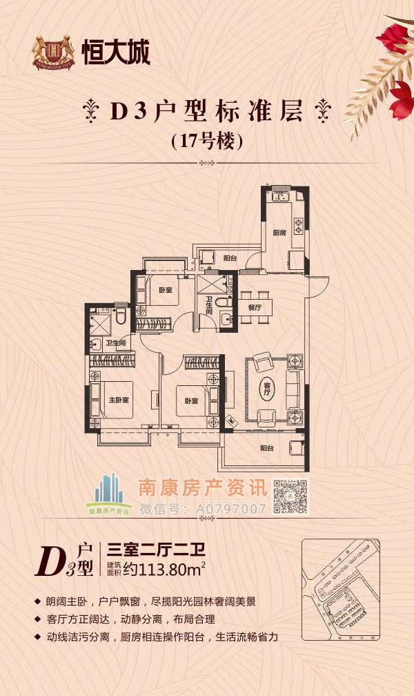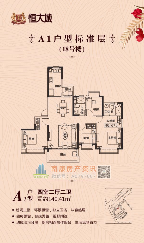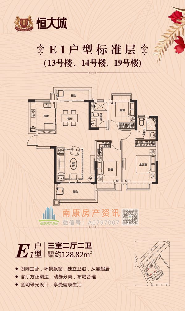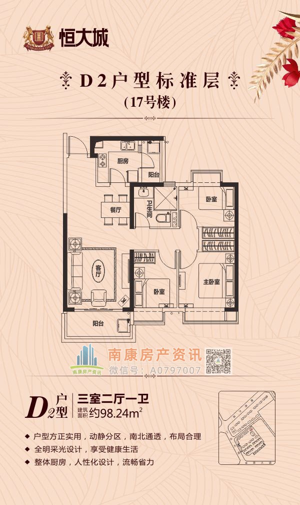 雄踞赣南大道中轴,扼守南康城市门户;向北接驳赣定高速及绕城高速,向南直通黄金机场;赣南大道升级扩建,自在通达赣州都市商圈,尽享便捷生活。集室内恒温泳池、棋牌室、健身大厅等高端休闲娱乐场所,坐享优雅奢居生活;恒大专属金碧物业,国家一级资质物业。赣州恒大城,启幕南康高端人居典藏!