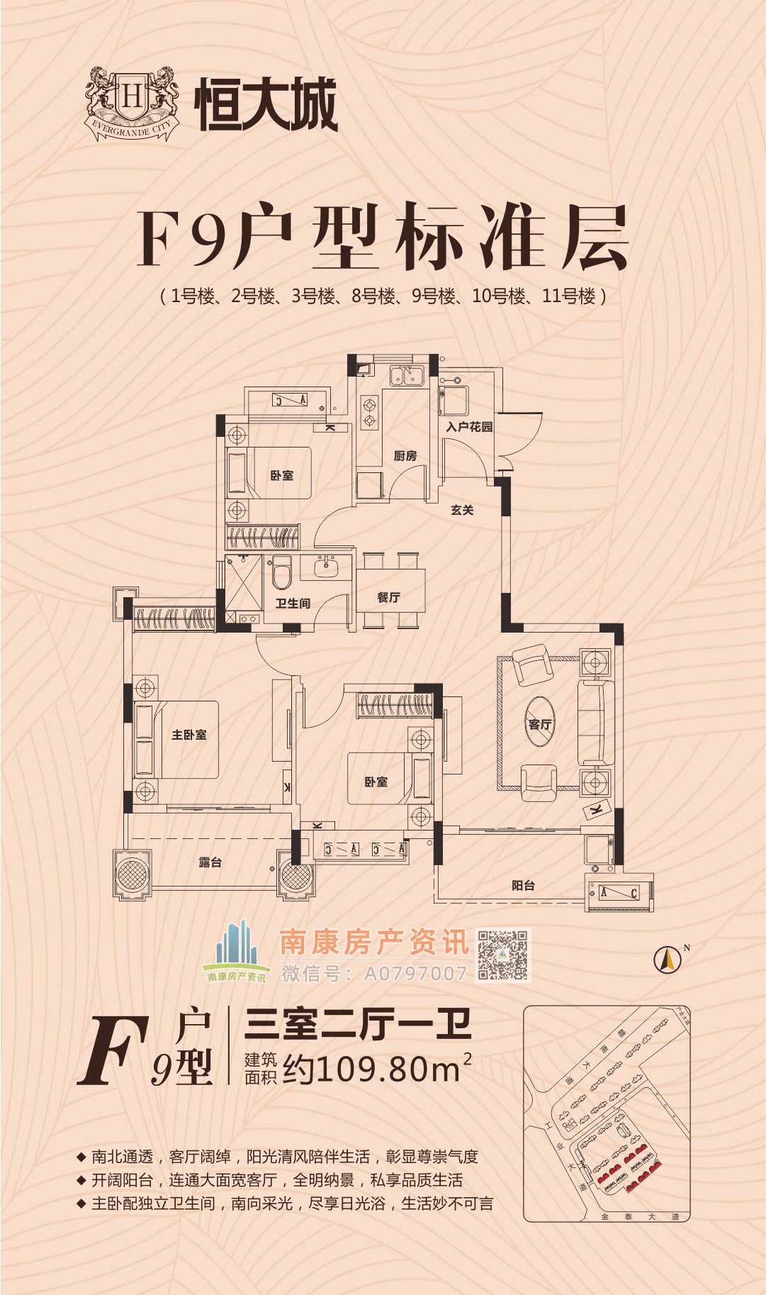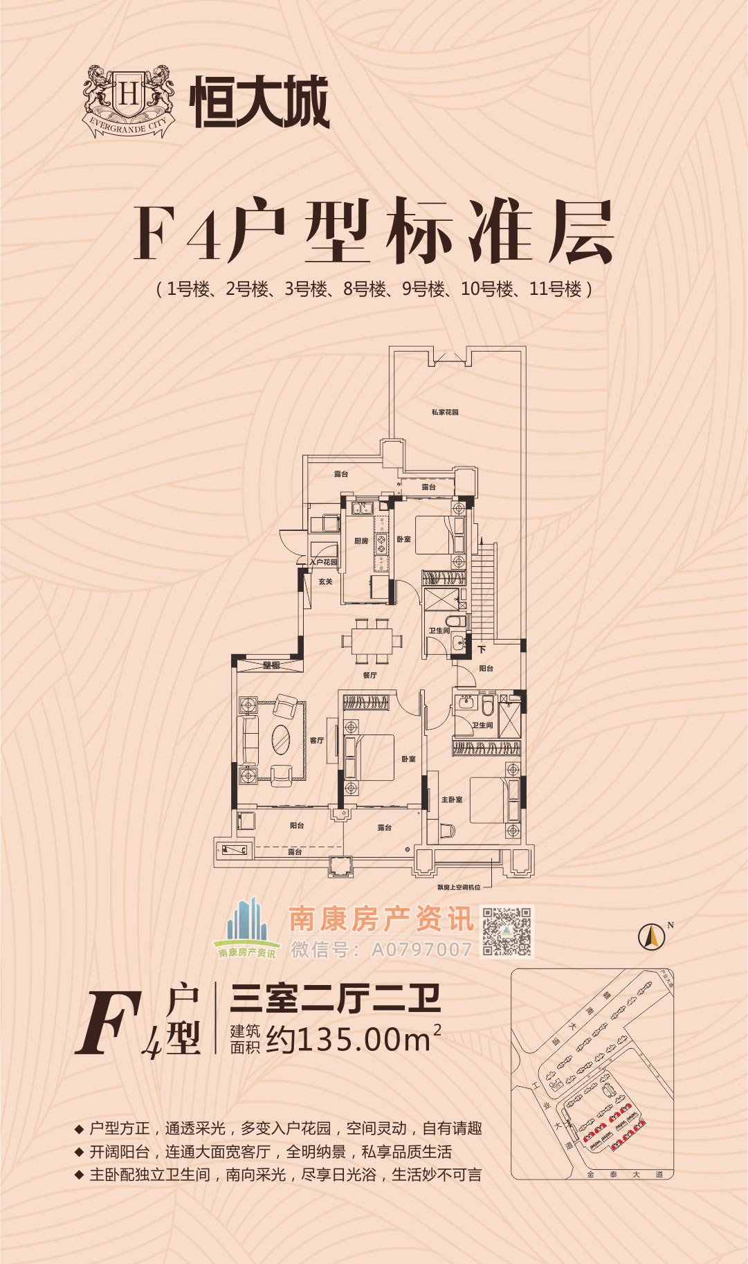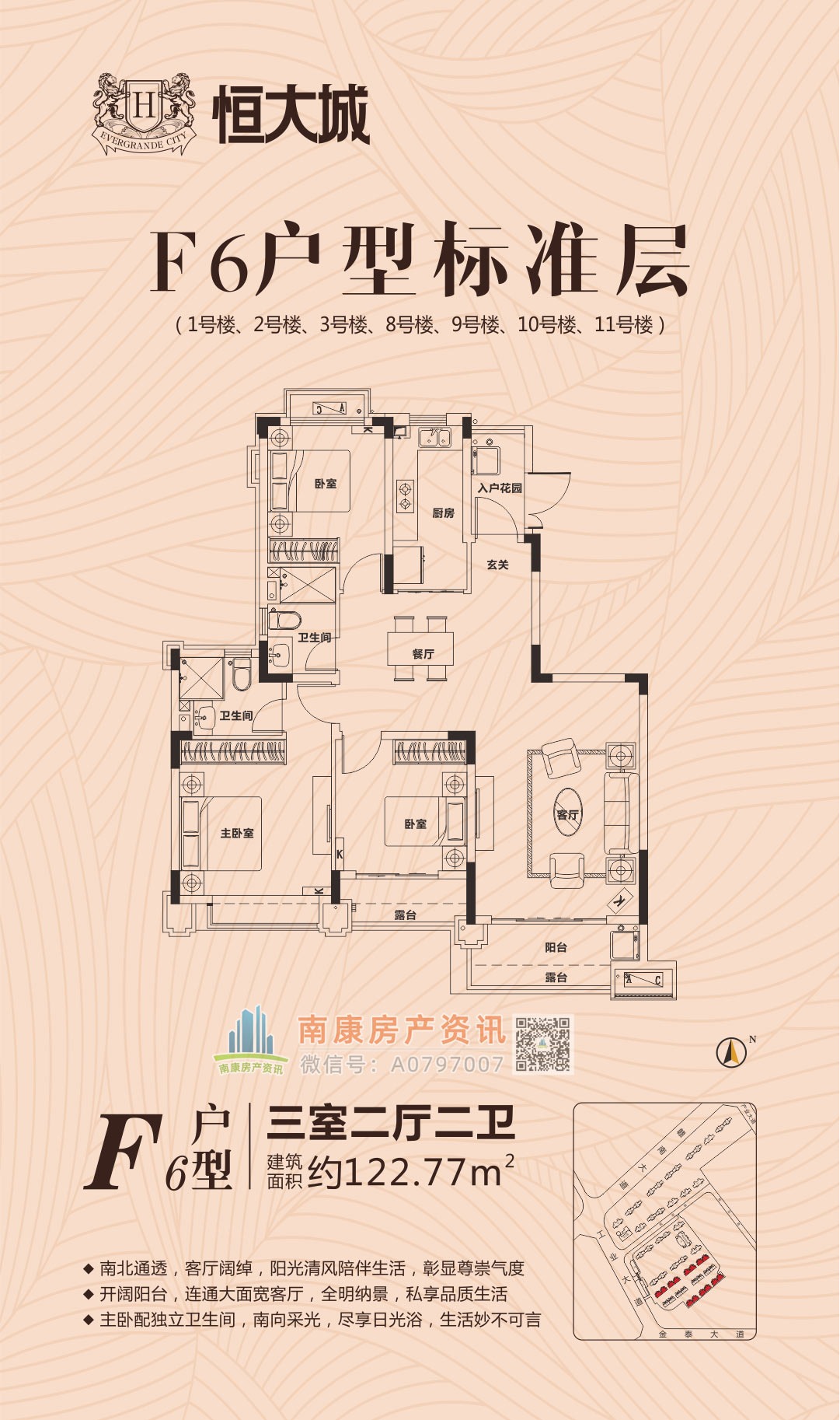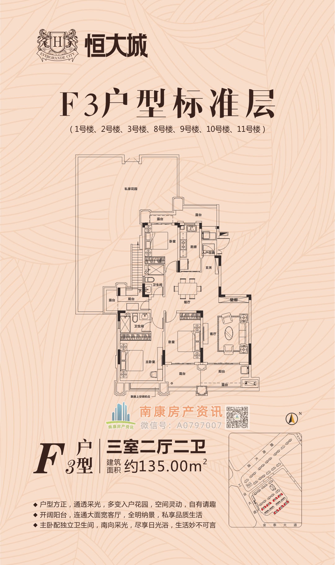 雄踞赣南大道中轴,扼守南康城市门户;向北接驳赣定高速及绕城高速,向南直通黄金机场;赣南大道升级扩建,自在通达赣州都市商圈,尽享便捷生活。集室内恒温泳池、棋牌室、健身大厅等高端休闲娱乐场所,坐享优雅奢居生活;恒大专属金碧物业,国家一级资质物业。赣州恒大城,启幕南康高端人居典藏!