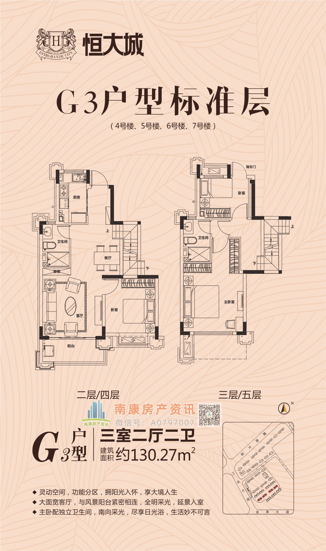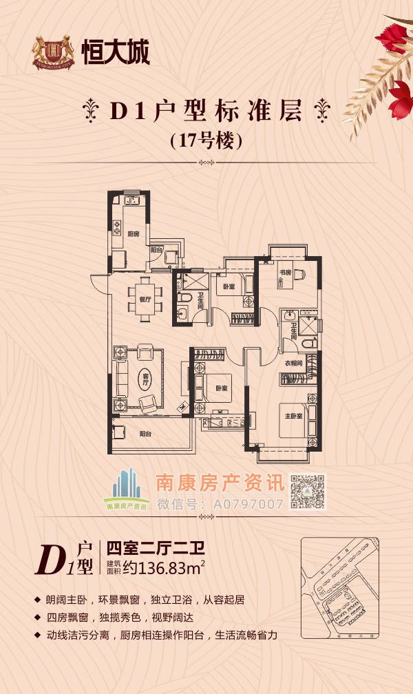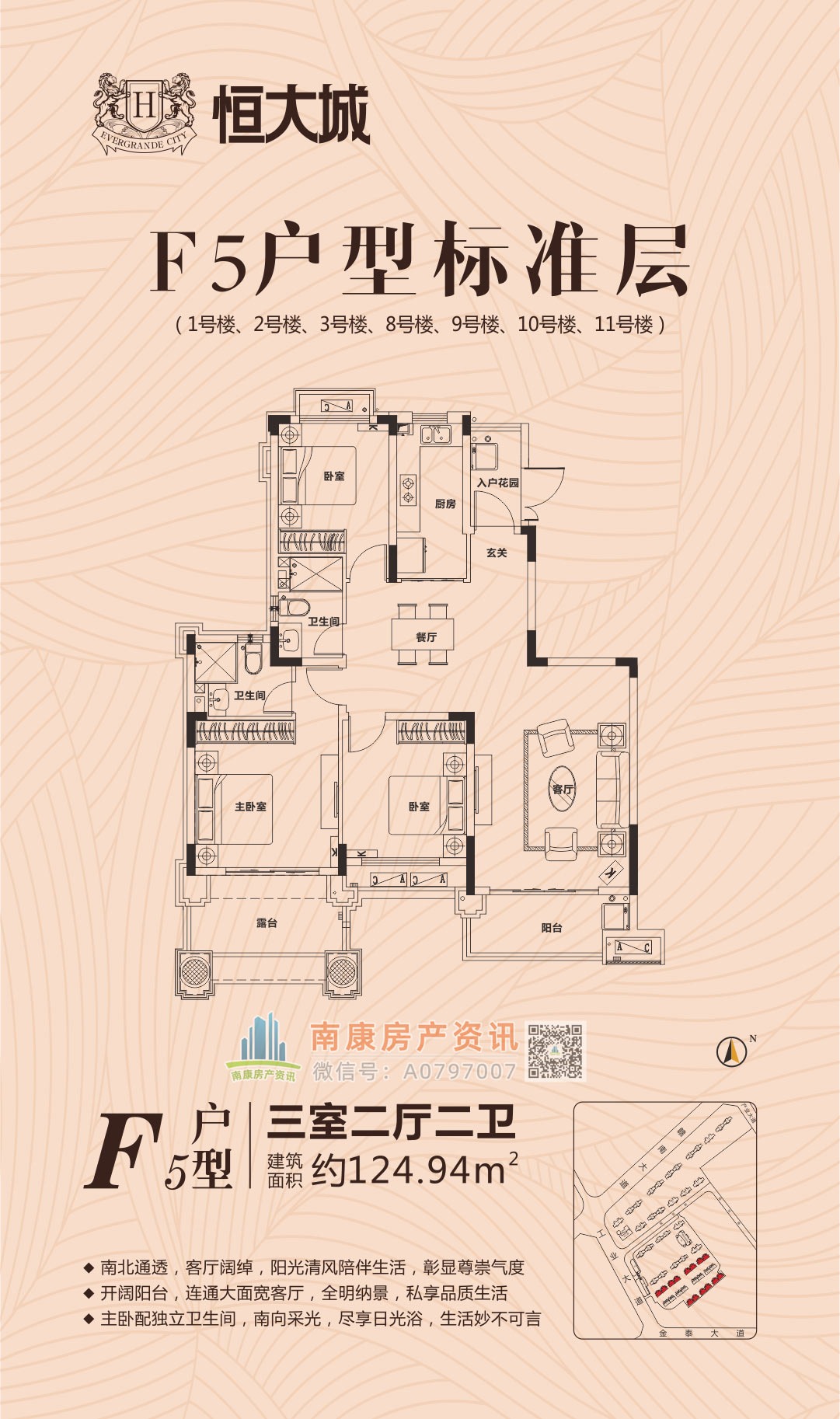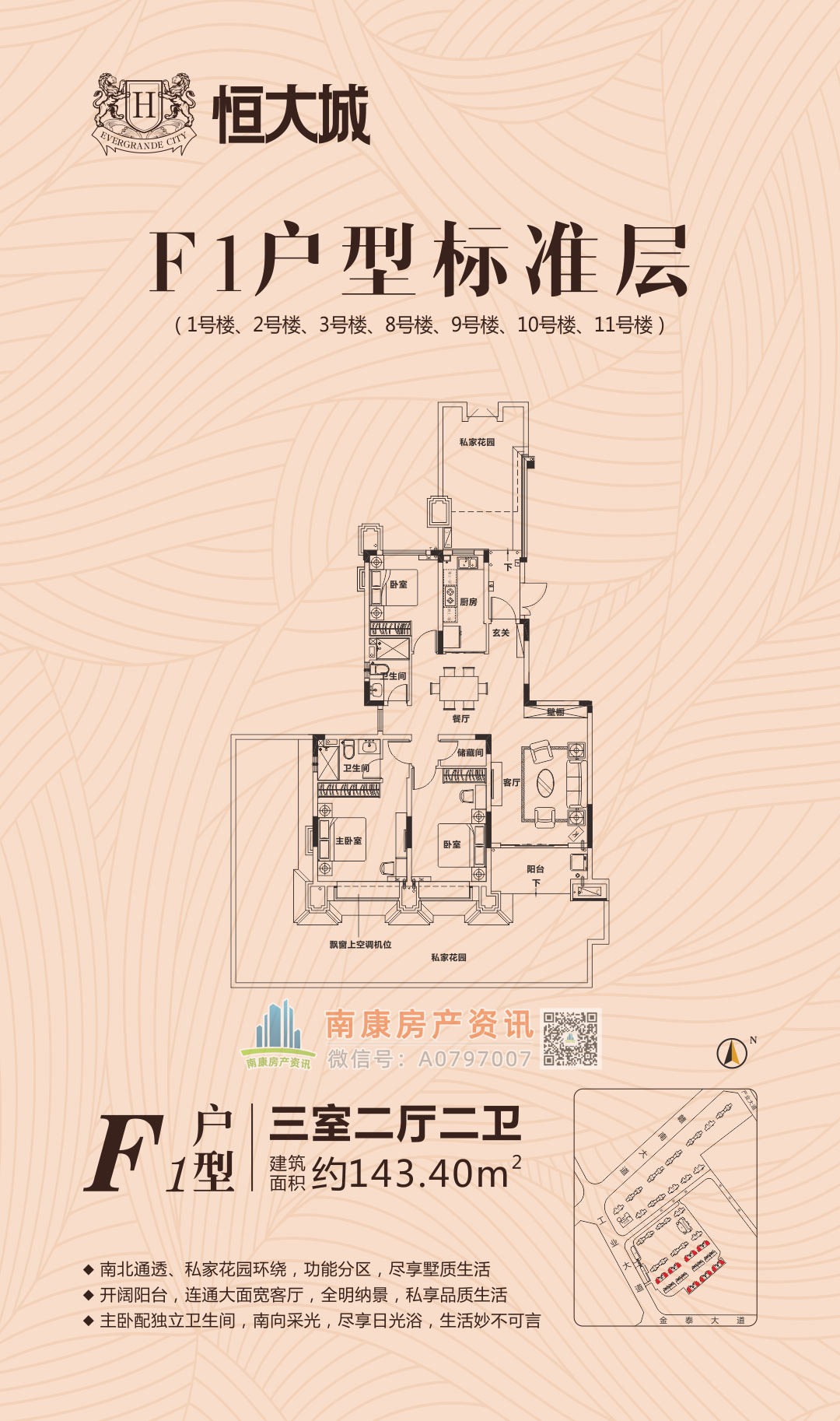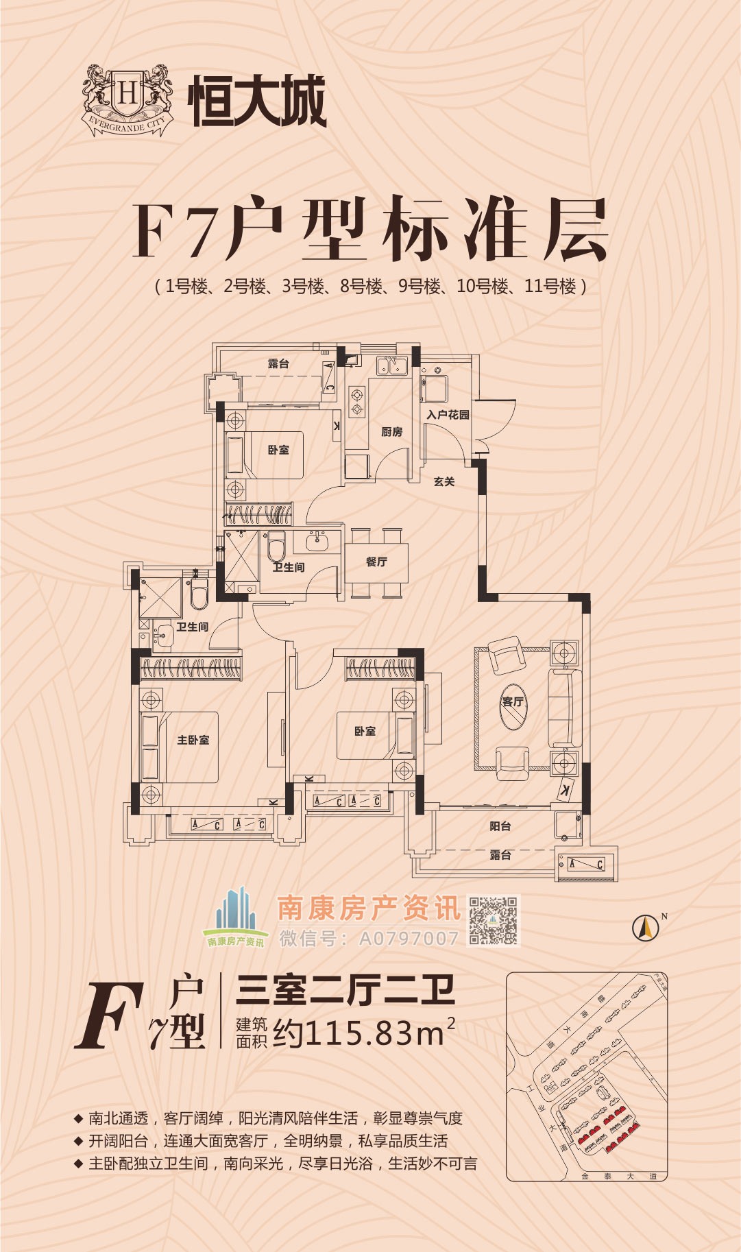 雄踞赣南大道中轴,扼守南康城市门户;向北接驳赣定高速及绕城高速,向南直通黄金机场;赣南大道升级扩建,自在通达赣州都市商圈,尽享便捷生活。集室内恒温泳池、棋牌室、健身大厅等高端休闲娱乐场所,坐享优雅奢居生活;恒大专属金碧物业,国家一级资质物业。赣州恒大城,启幕南康高端人居典藏!