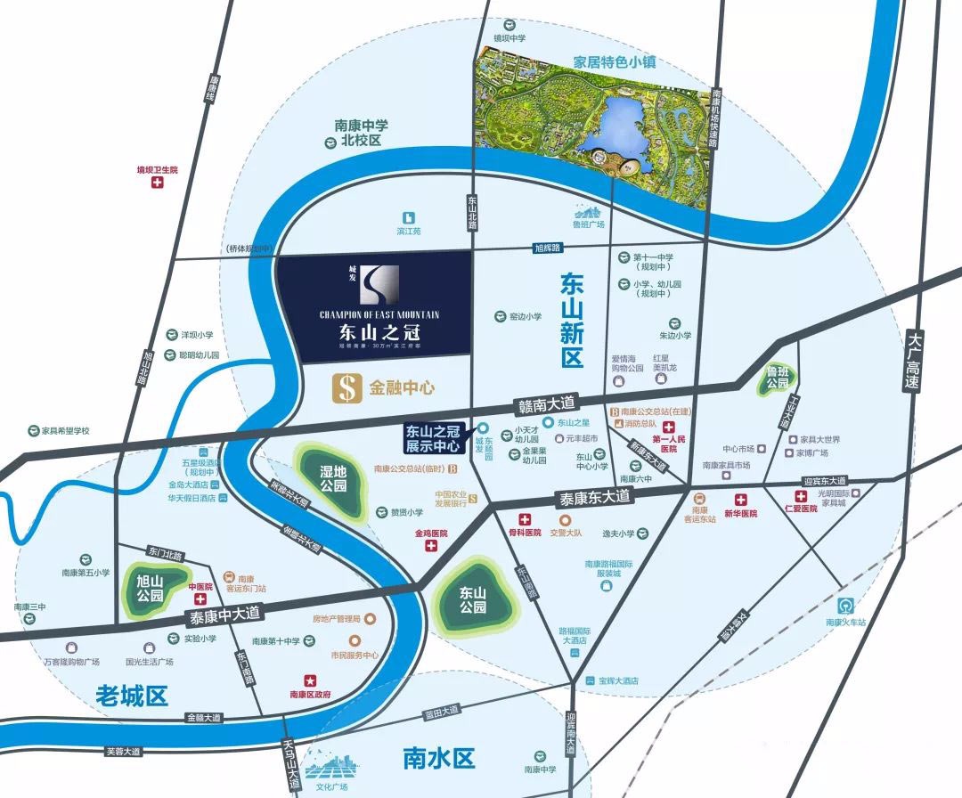 项目地理位置优越。四面环路,周边交通路网通达便利。距南水新区和老城区仅5分钟车程,距赣州城区仅25分钟车程。周边配套丰富,学校、医院、银行金融等单位云集,已经逐渐形成完善的生活居住氛围。在商业购物方面,万客隆超市、路福服装城、临时农贸市场等距离项目都比较近,生活购物非常方便。