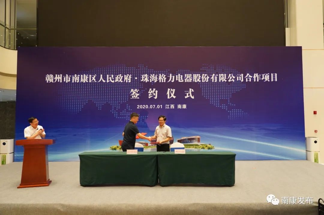 7月1日上午,南康区政府与珠海格力电器在南康区双向开放服务中心正式签约,标志着珠海格力电器正式签约落户南康,这是珠海格力电器首次在江西投资的制造业基地项目。