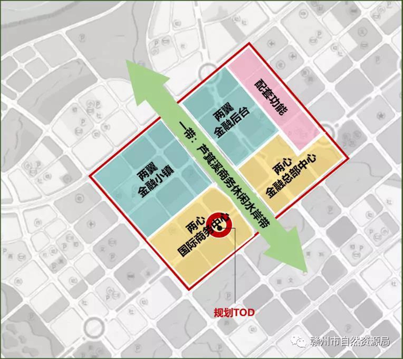 发展目标:融合城市综合体、特色小镇发展理念,坚持生态文明理念下现代城市发展策略与产、城、景融合发展思路,打造高端商务、形态多元、绿色智慧、宜居宜业的高品质城市形态,共创一座充满活力、创新力、魅力的国际化花园式国际金融商务中心,重点打造区域性金融机构总部中心、特色金融服务发展示范区、高端现代服务业发展基地,成为赣州城市现代化的靓丽名片和高质量发展的展示窗口。